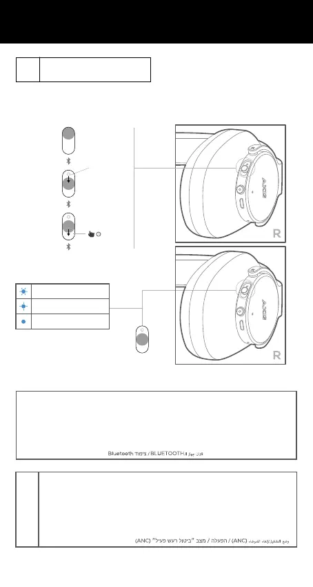ANCモードにするに は / WŁ. ZASILANIA/TRYB ANC / 전원 ON/ANC 모드 / 打开电源/ ANC模式 / SEDANG
