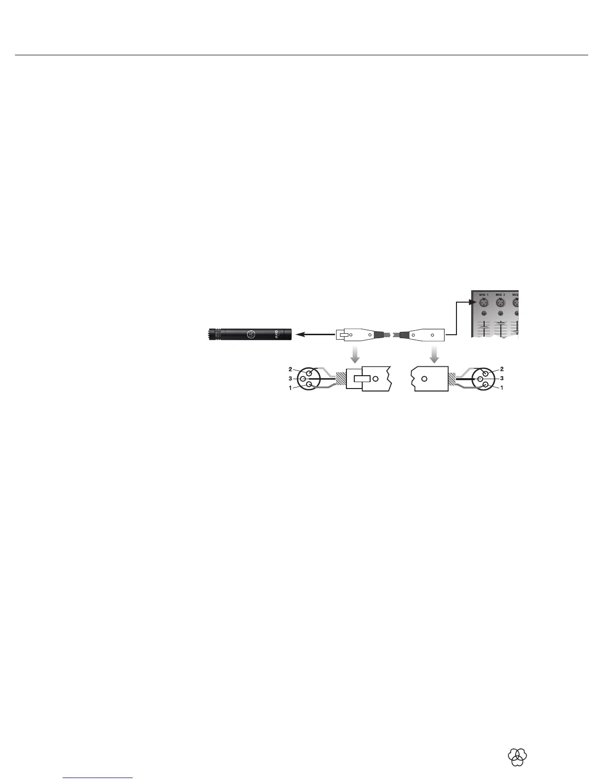 1) Utilisez un câble XLR pour connecter le microphone à une entrée XLR