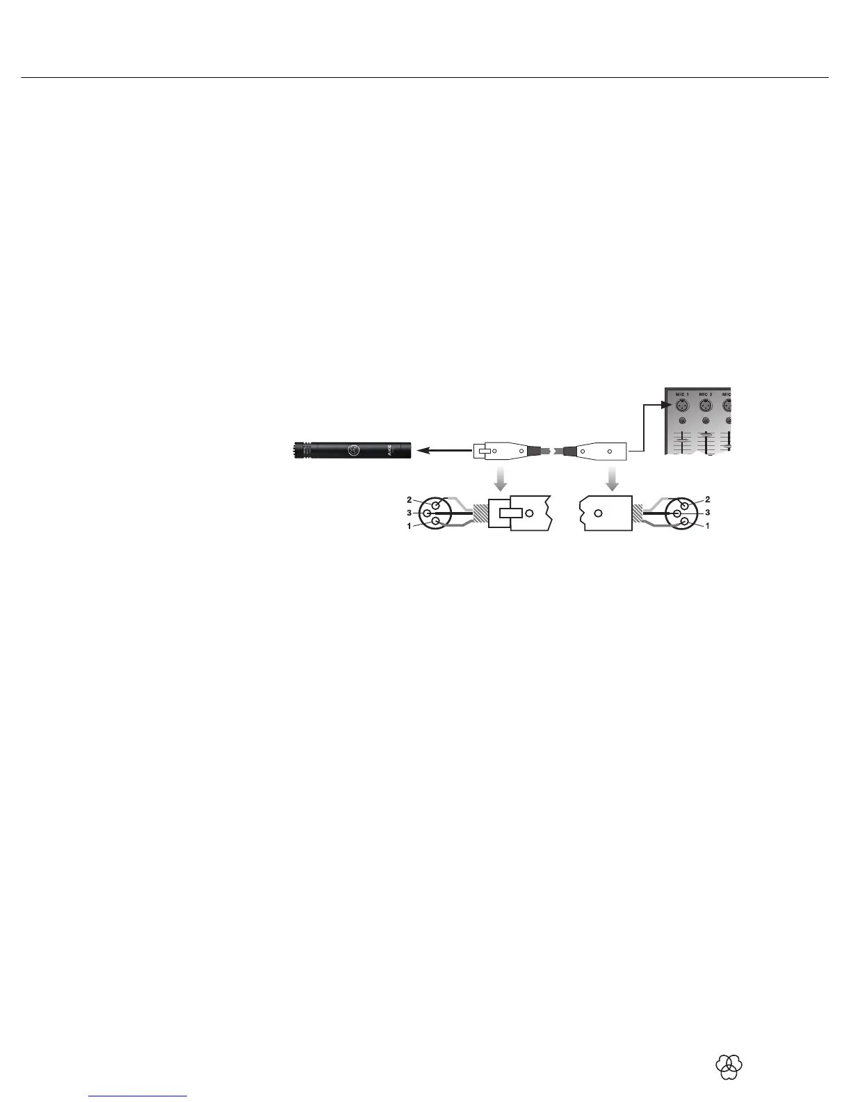 Das Mikrofon besitzt einen symmetrischen Ausgang mit 3-poligem XLR-Stecker: