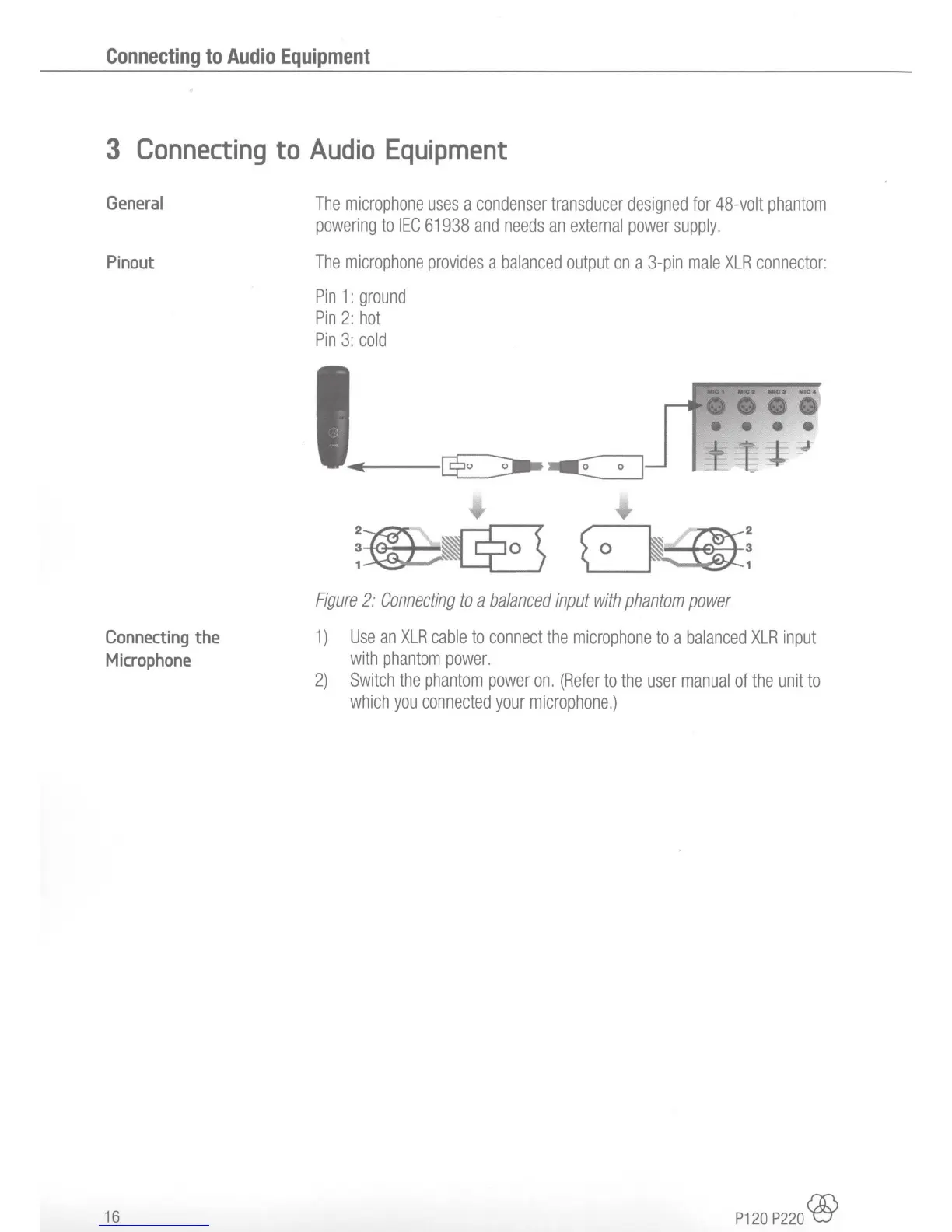AKG P220 - General; Pinout; Connecting the Microphone