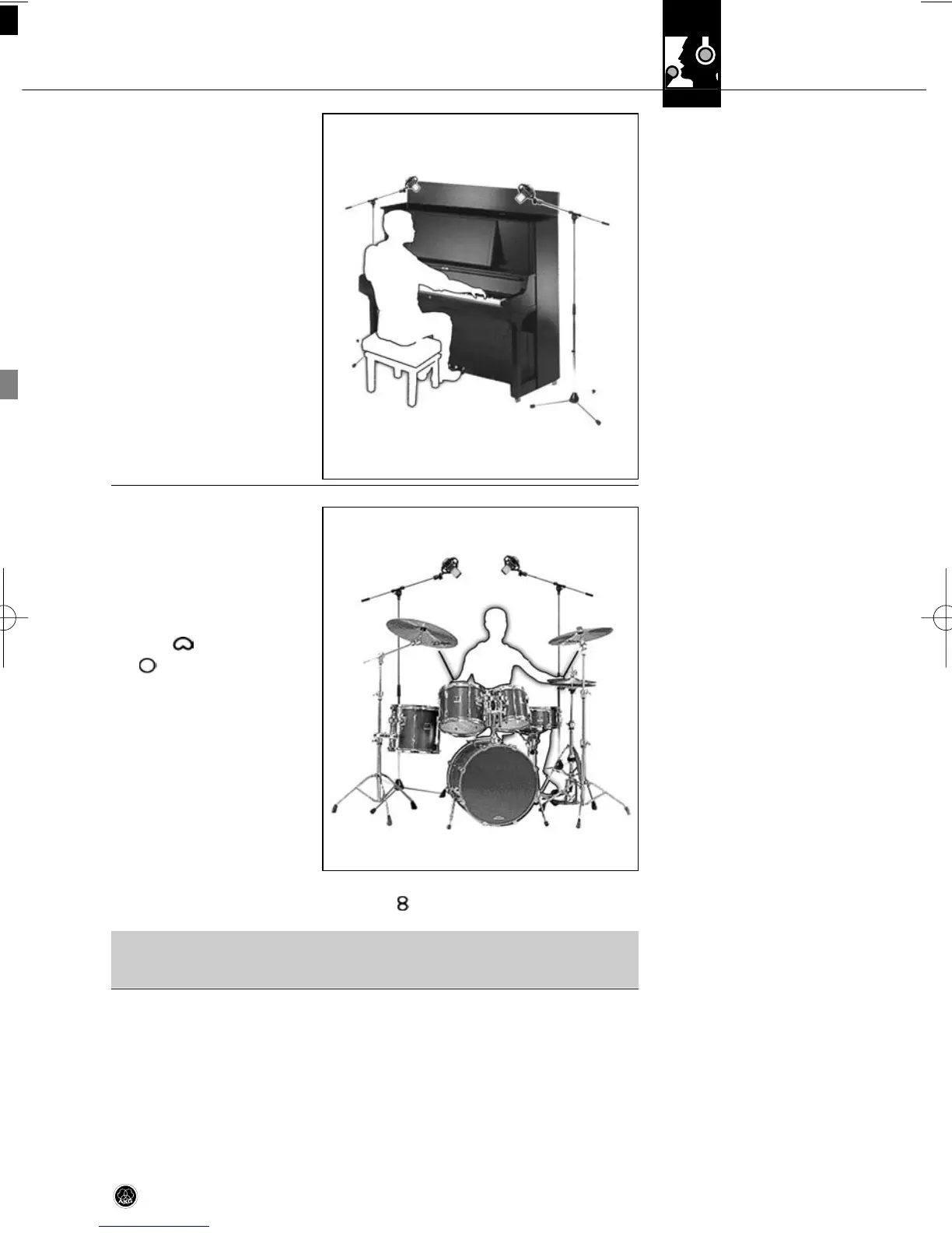 • Be sure to place the microphone out of reach of the drumsticks! The impact of a