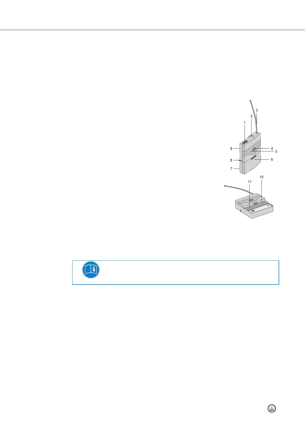 8 Hebilla de cinturón: Para fijar el transmisor de bolsillo en el cinturón.
