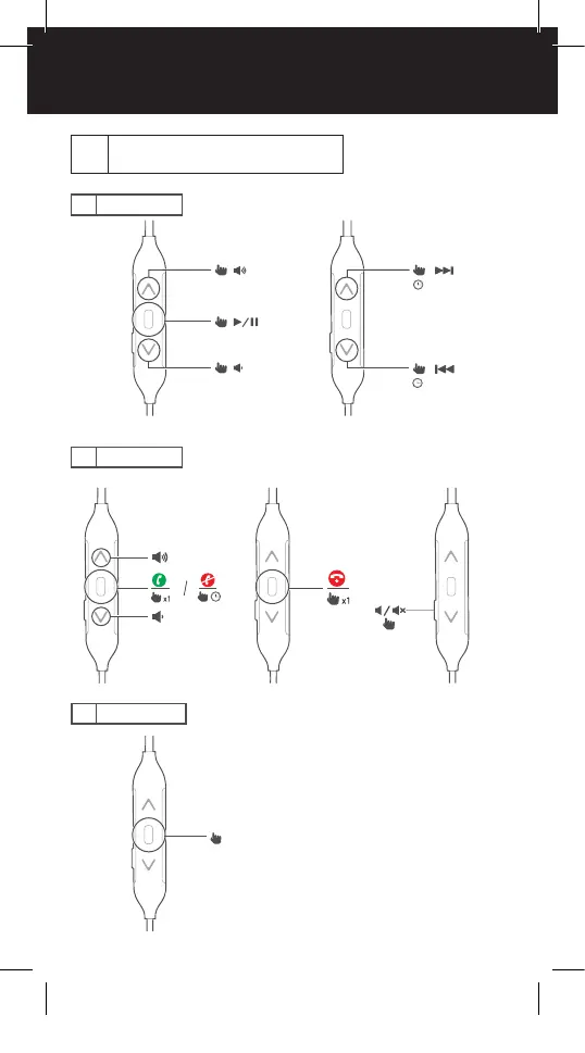 AKG Y100 WIRELESS - Button Functions; Music Control; Phone Call Management; Voice Assistant Activation