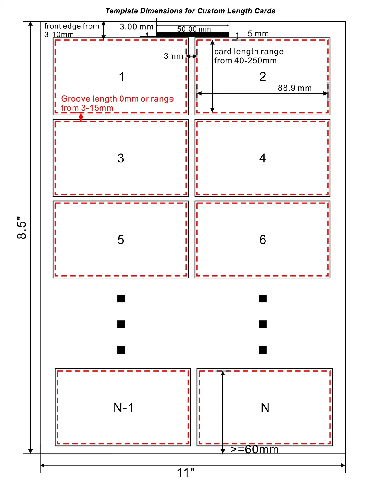 Template Dimensions for Custom Length Cards