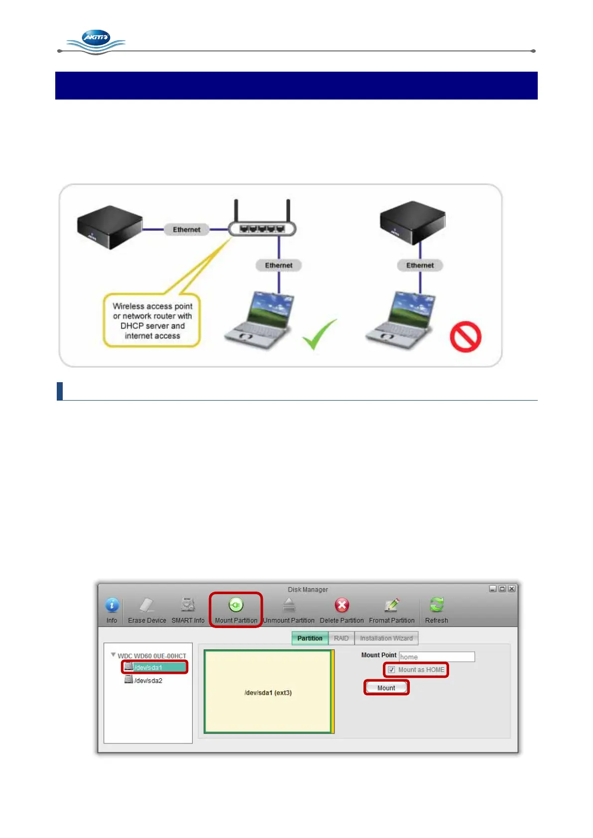 In order to use all the features and functionalities of this device, a partition has to be mounted as