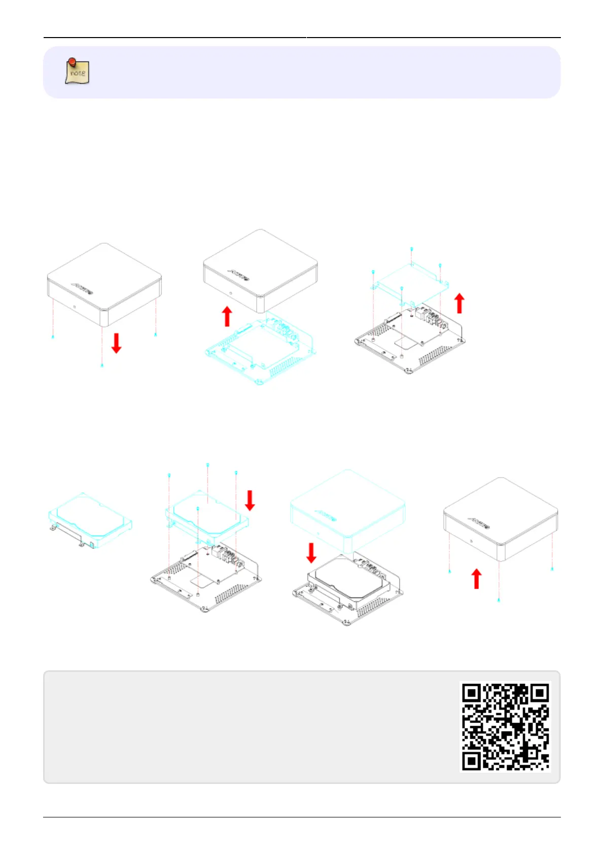 the HDD chassis and replace the top enclosure. Fasten the screws at the bottom of the case, place