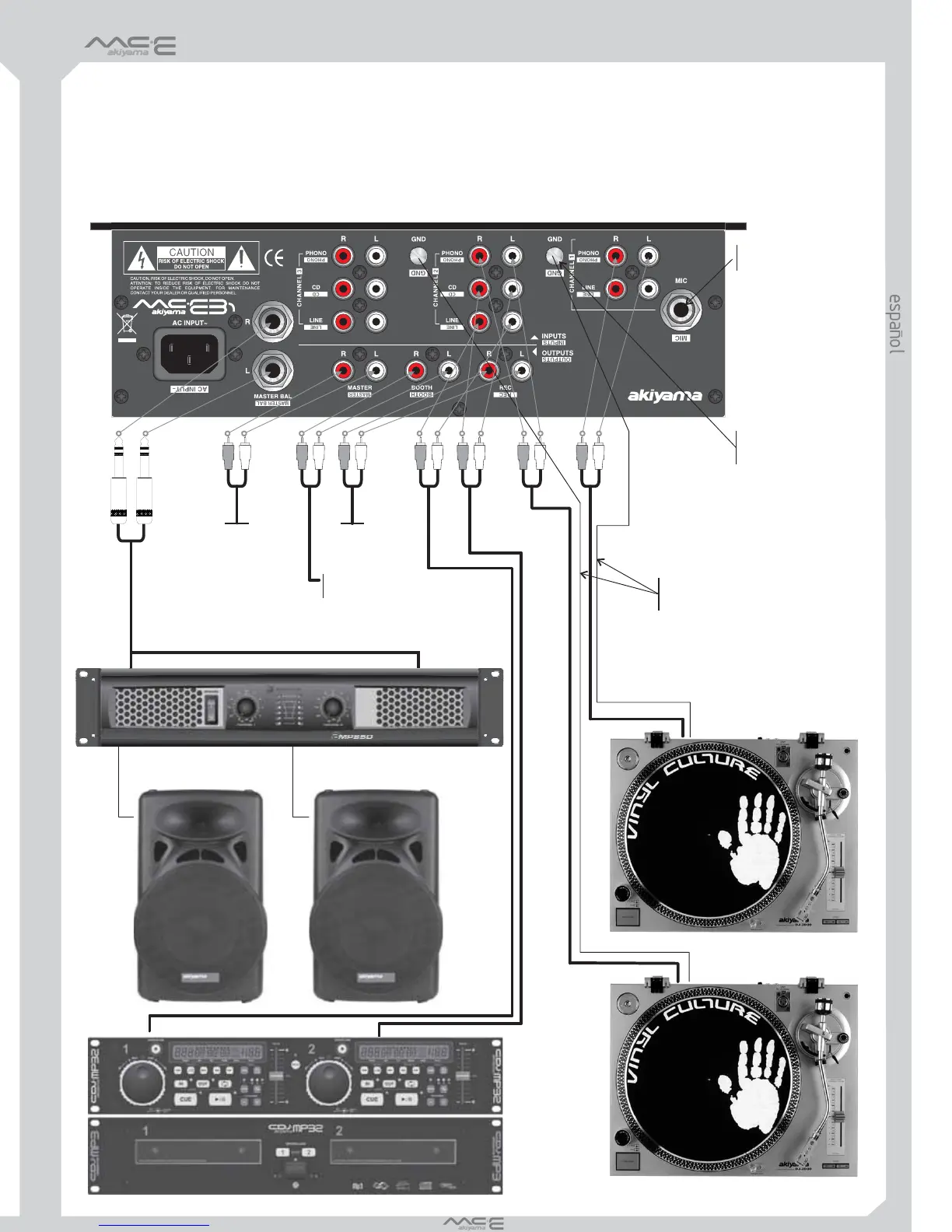 los cables de conexión entre mezclador y etapa de potencia.