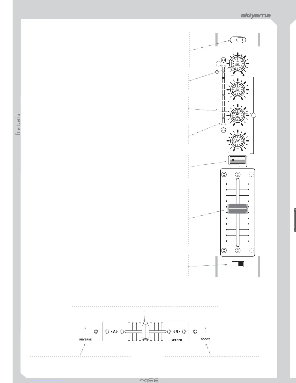 et fader de canal sont interchangeables. Pour remplacer le Crossfader/fader, retirez les vis