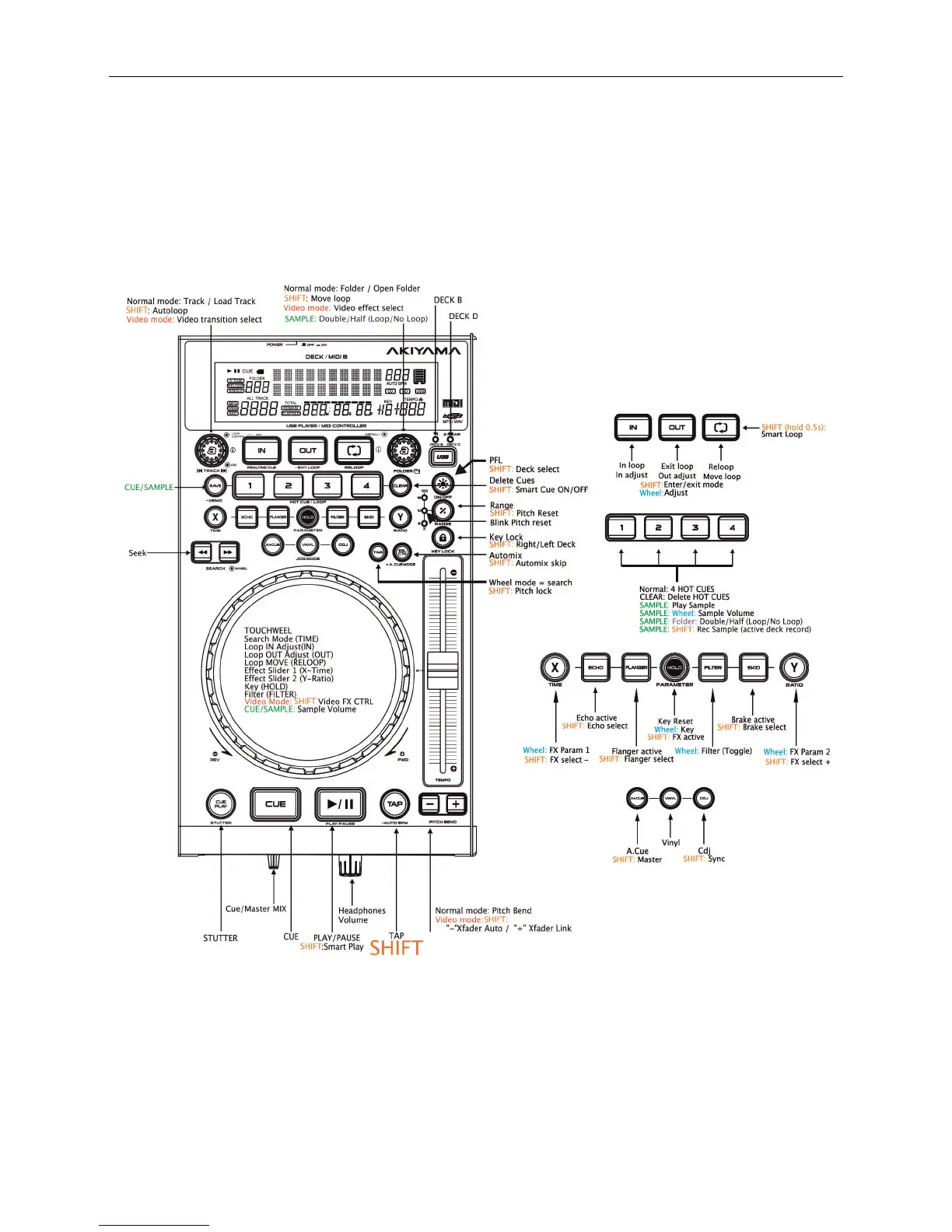 This point provides two schemas that represent graphically all the functions of Virtual DJ Syncron controls.