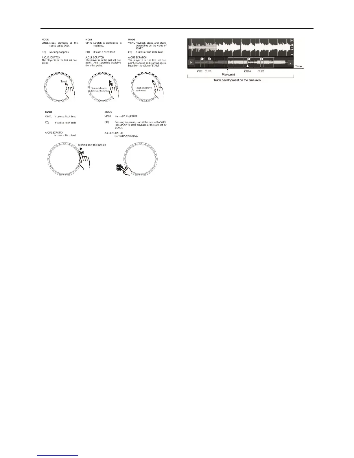 A-Using the wheel in PAUSE mode: CDJ, VINYL or A. CUE mode, can