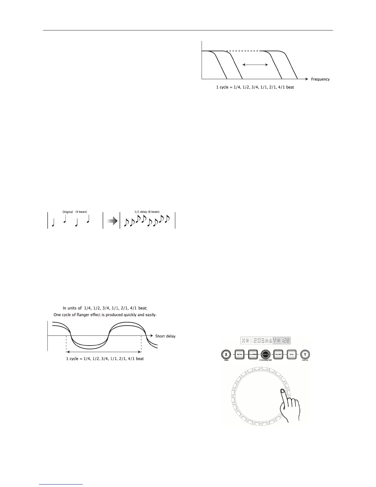 This function allows a delay sound with beat. The delay effect is