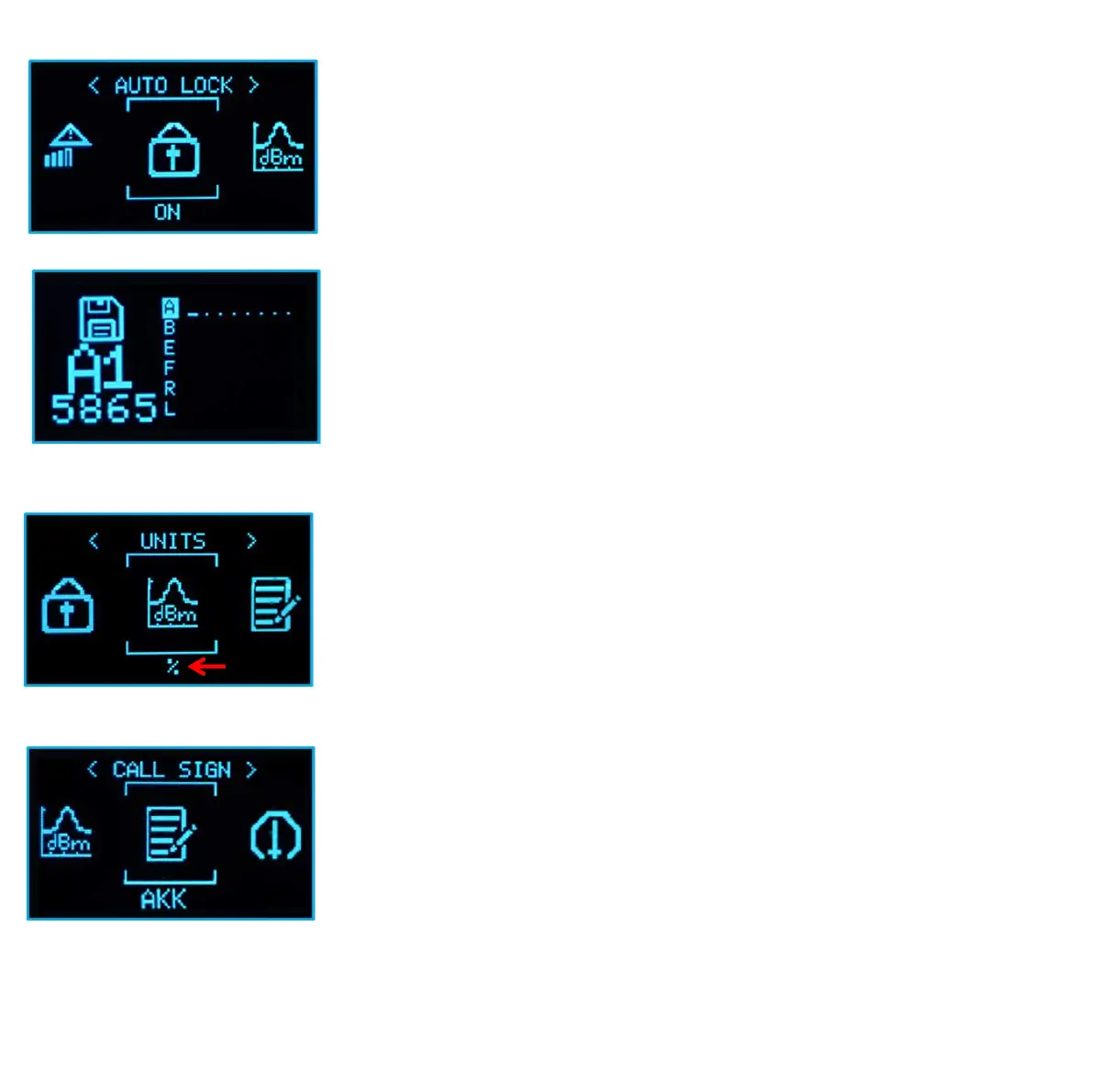 Units: show index signal in “%" or "dBm"