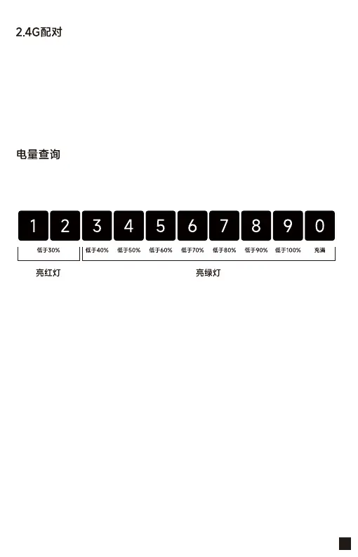 显示红灯。如果电池电量低于100%,数字1-9键将显示绿灯,电池电量充满则数字1-0键显示绿灯。