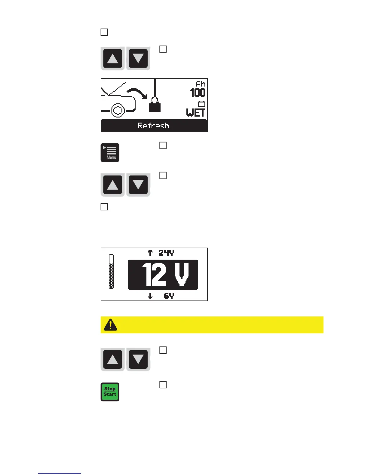 VORSICHT! Gefahr von Sachschäden bei falsch eingestellter Batteriespannung.