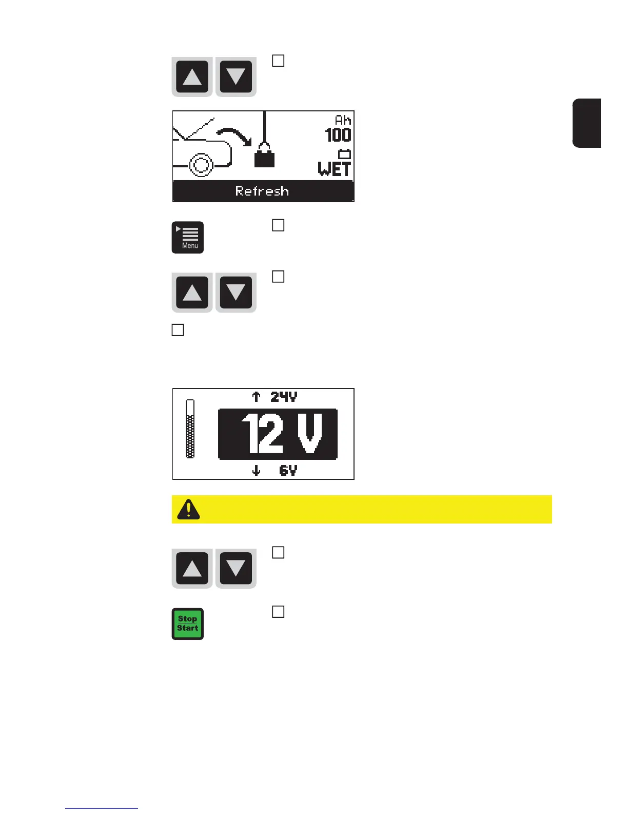 - Use the up/down keys to select the correct battery voltage in the subsequent selection