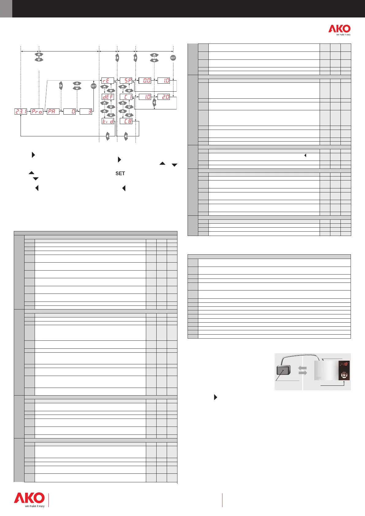 - Press key to access the next parame-