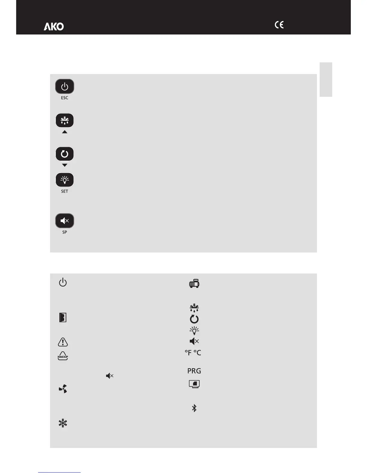 Premindo durante 3 segundos, inicia/para o degelo.