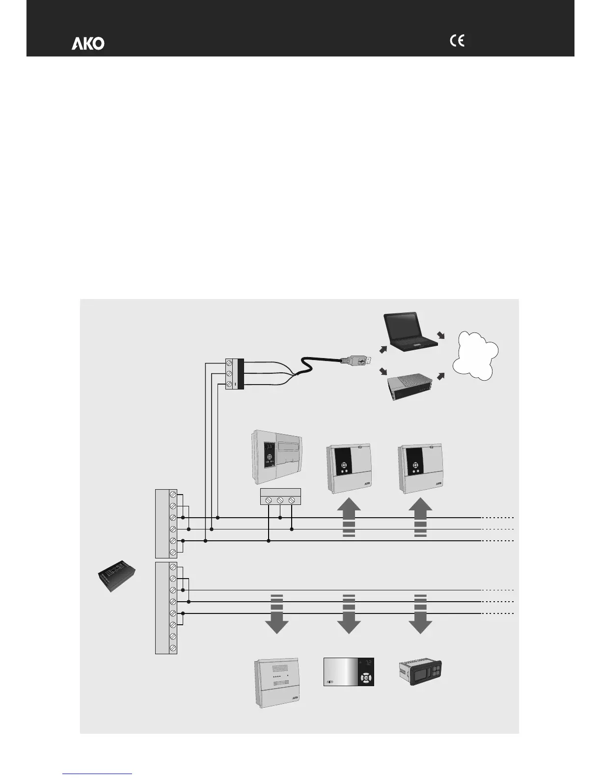 Up to 127 units can be connected to a PC with AKONet (AKO-5010), or to the AKO-5011 web server. Each of these
