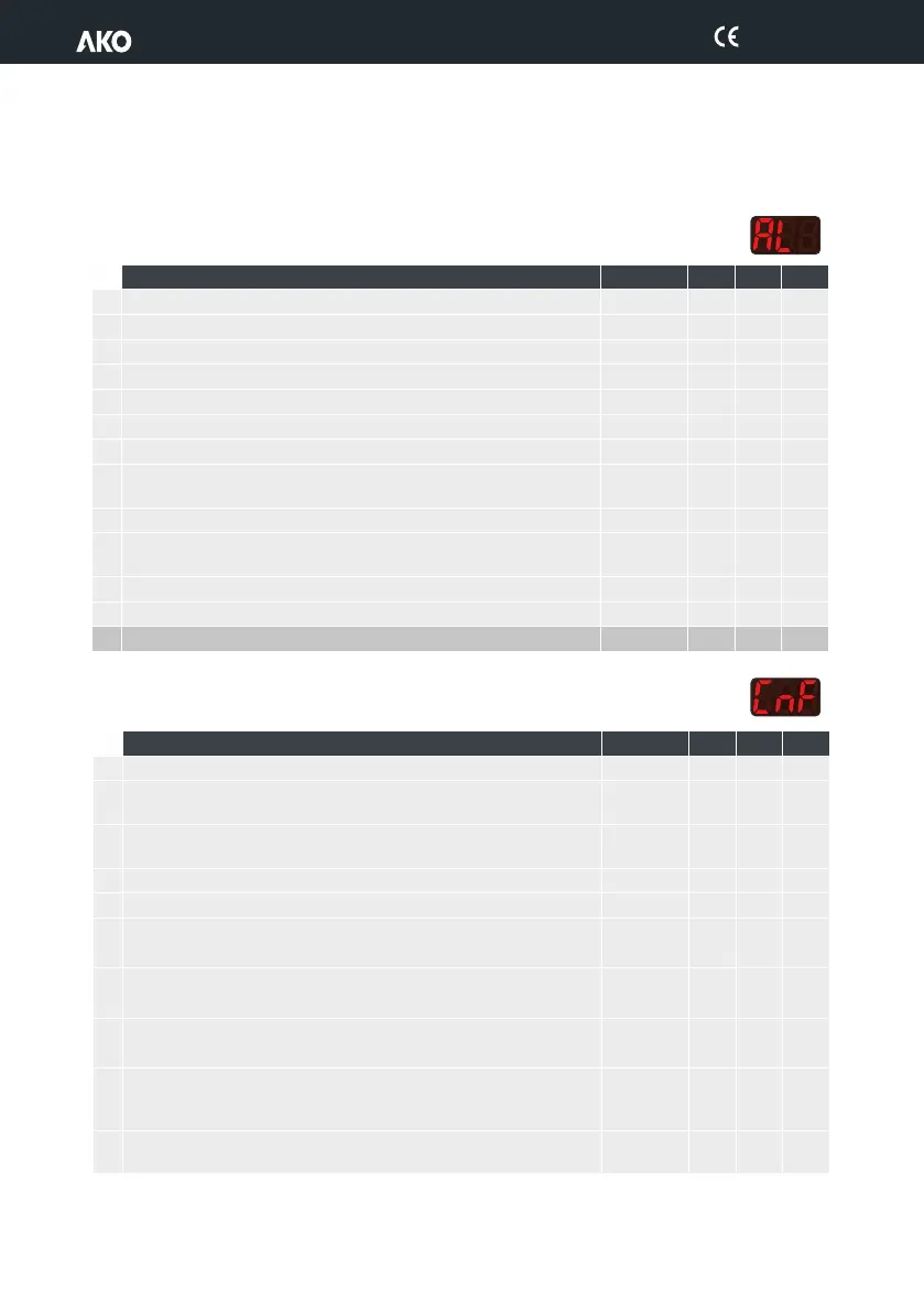 Configuration of temperature alarms (Page 18): 0=Relative to SP 1=Absolute
