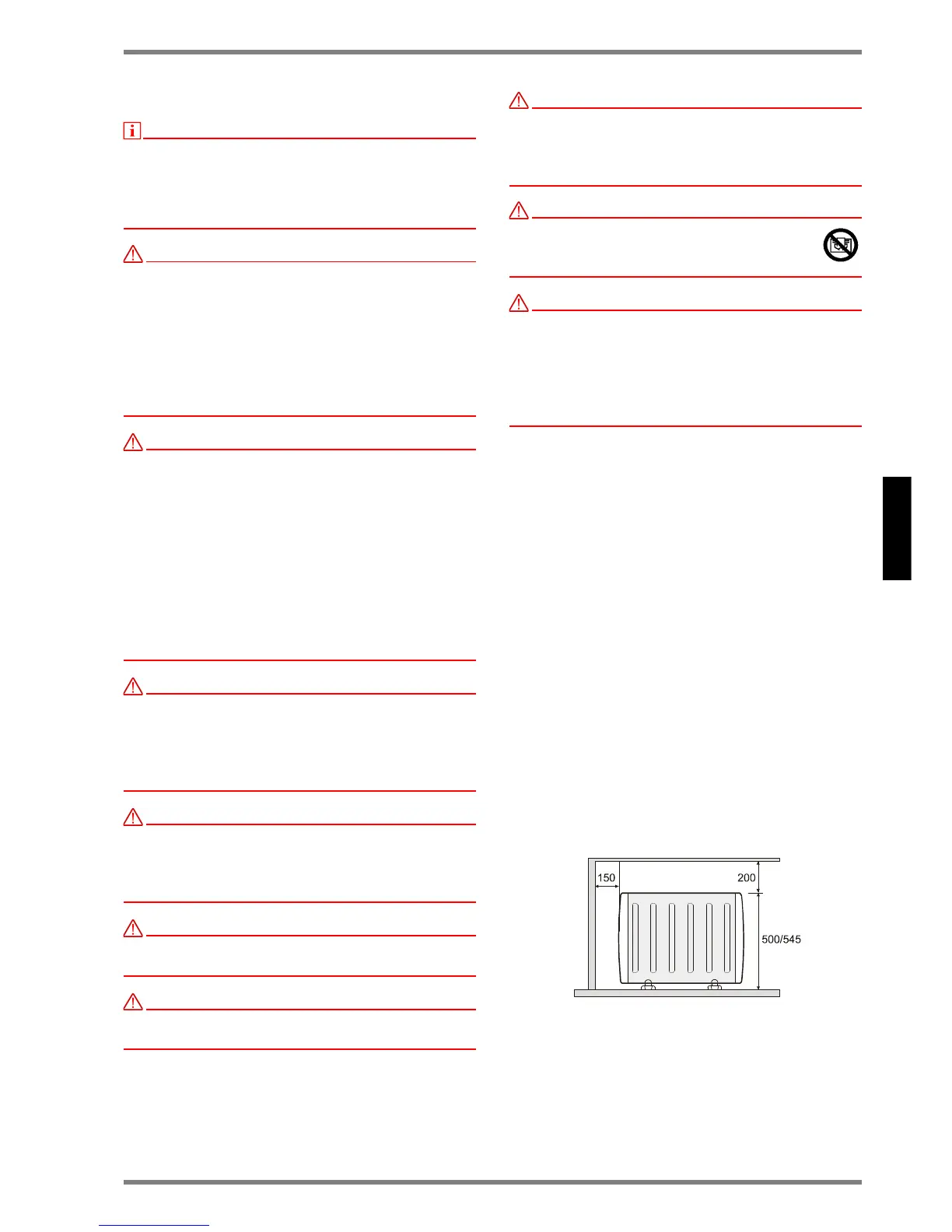 almeno 500 mm fra il lato anteriore dell'apparecchio e