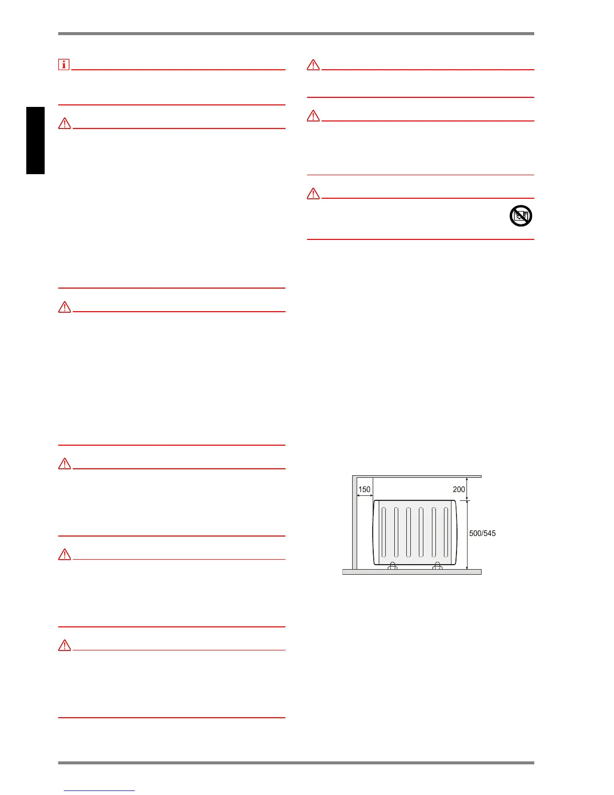 Das Heizgerät darf nur wie dargestellt auf einer hori-