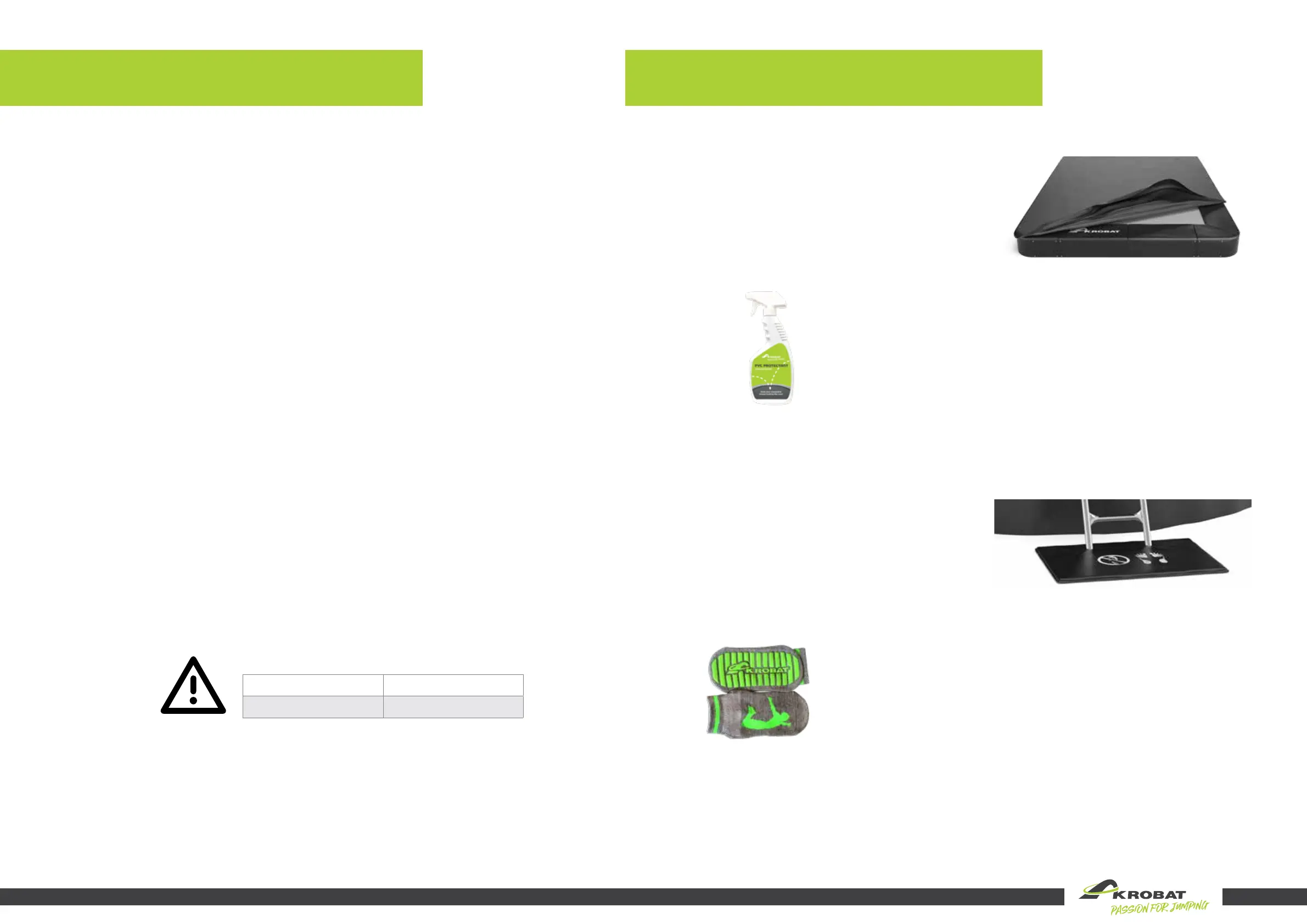 All Akrobat trampoline mats and frame pads are made of durable high-quality materials and should not be cleaned