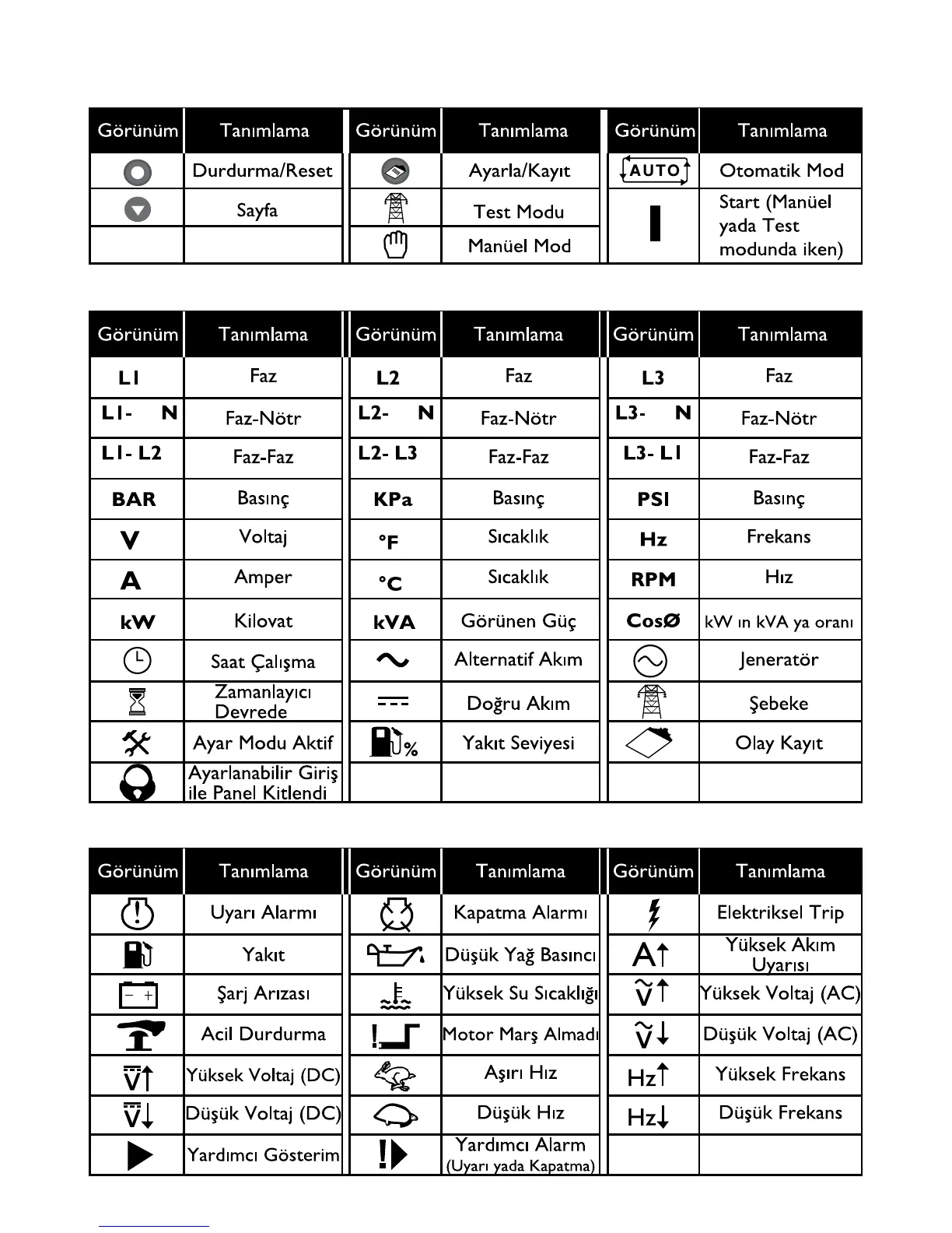 6.3.3. Alarm Göstergeleri