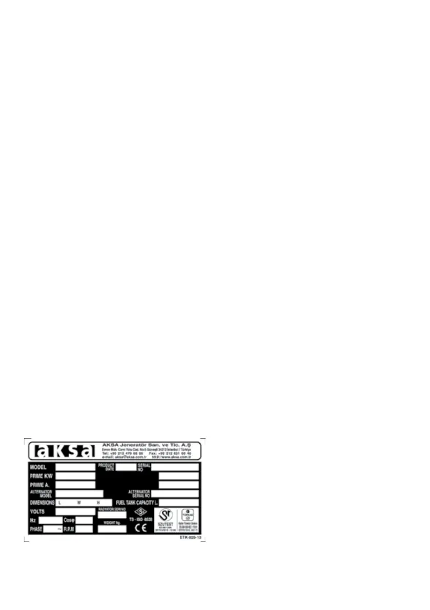 Şekil 1.1. AKSA Jeneratör Grup Etiketi