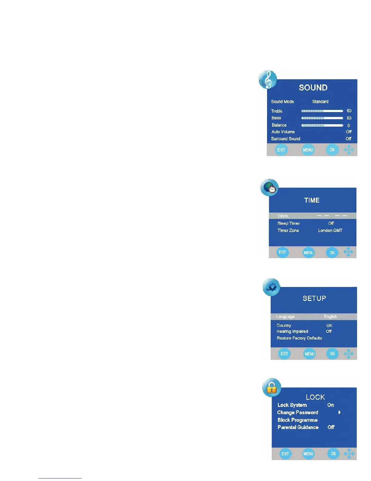 Clock. Once the TV is tuned to a DVBt signal the clock time is automatically
