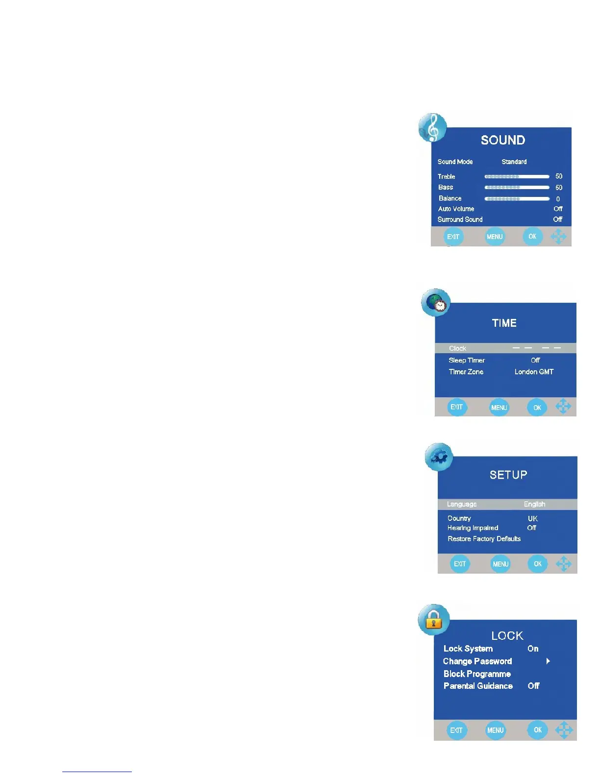 Clock. Once the TV is tuned to a DVBt signal the clock time is automatically