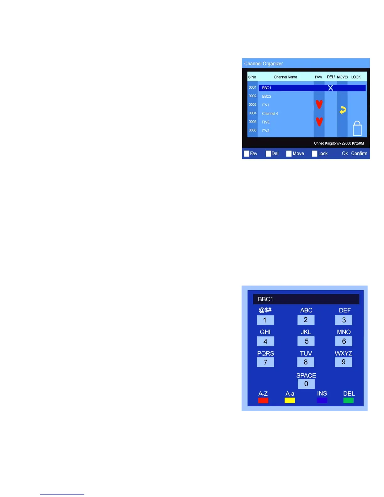 the Red button, to move the cursor use the Blue button, and to Delete a