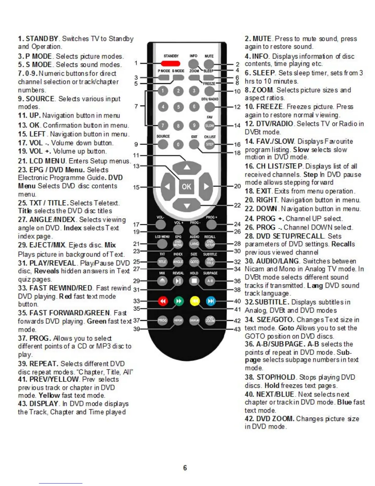 Akura APLDVD2YR1968 - 5. Remote Control; Remote Control Button Functions