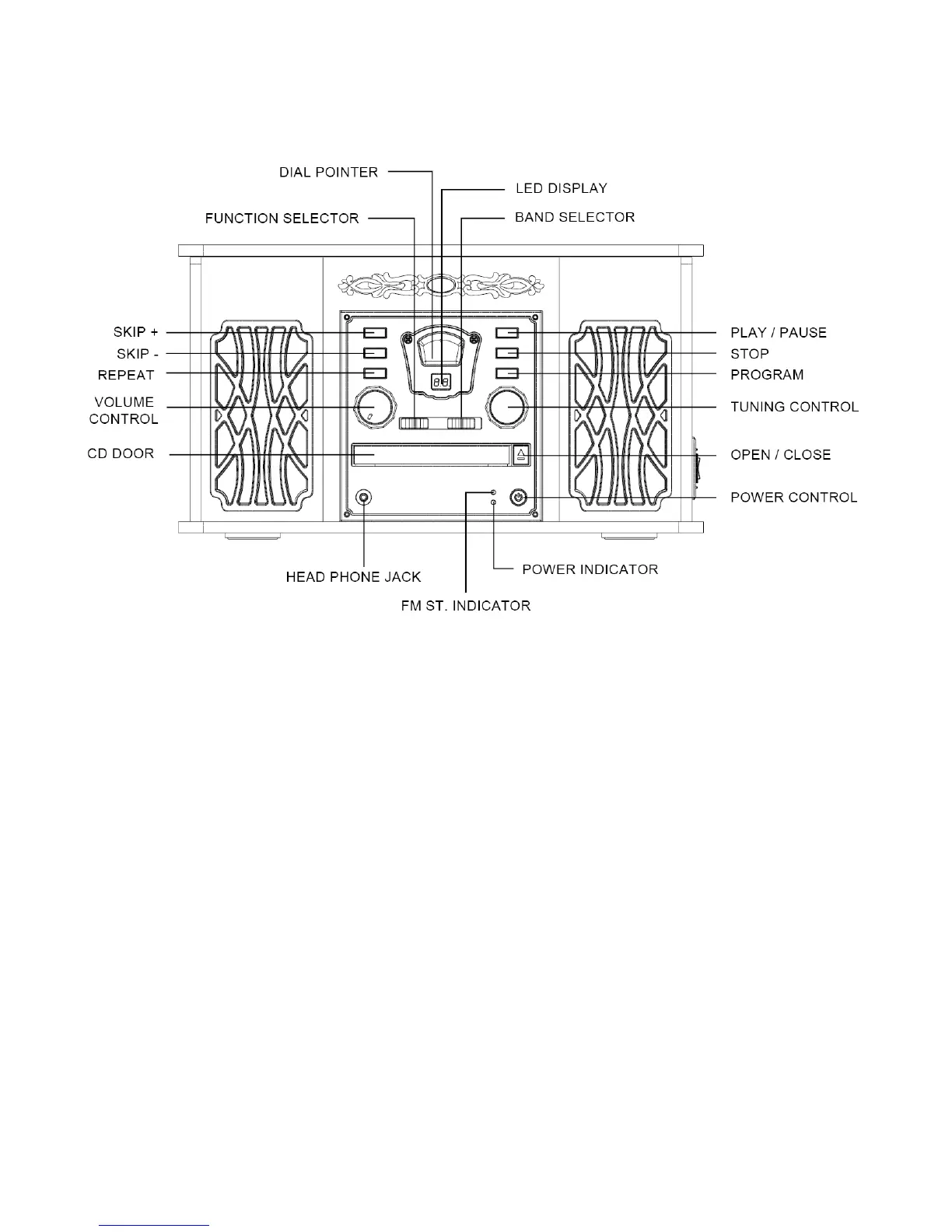 Function Selector. Selects Record player, CD