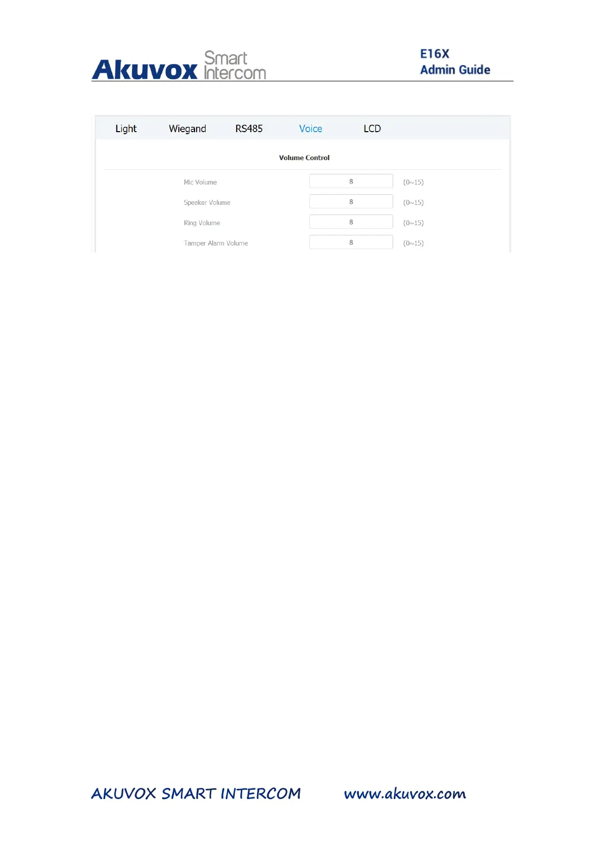 Tamper Alarm Volume: set the tamper alarm volume from 0-15