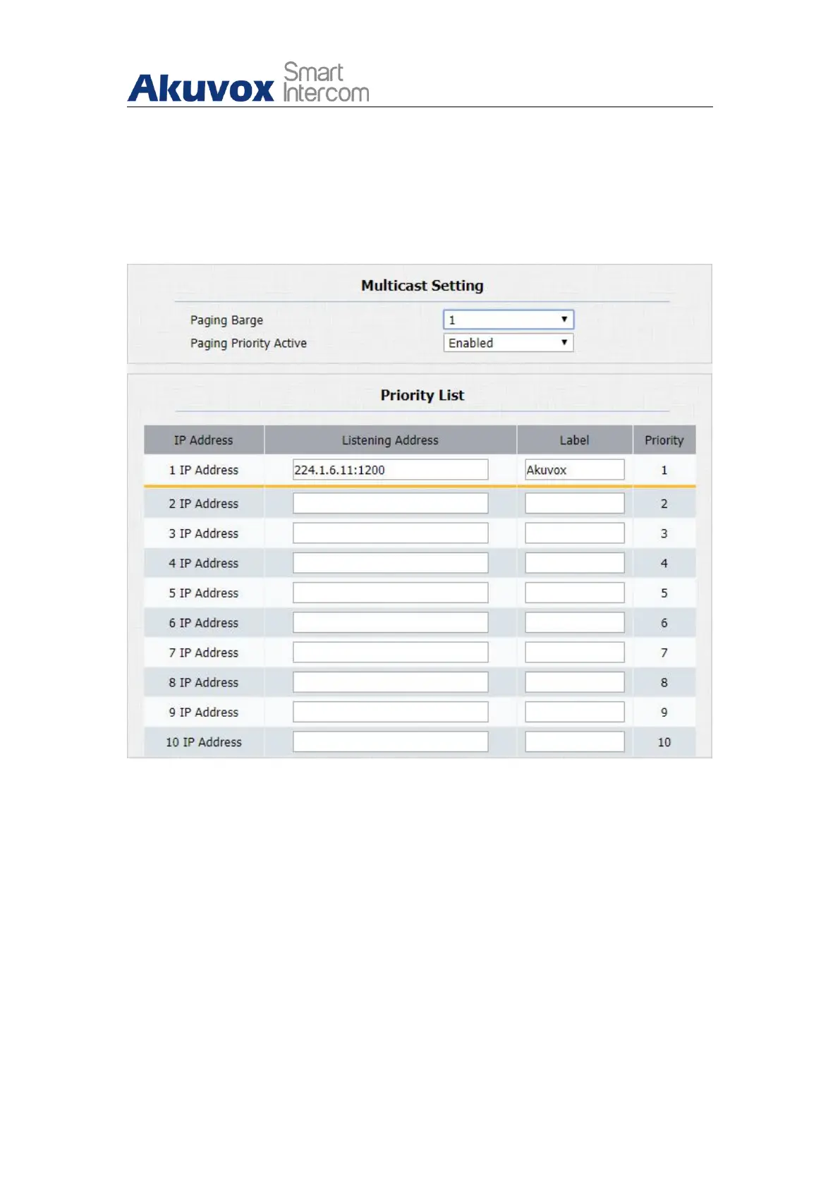 Paging Priority Active: multicast calls are called in order of priority or not.