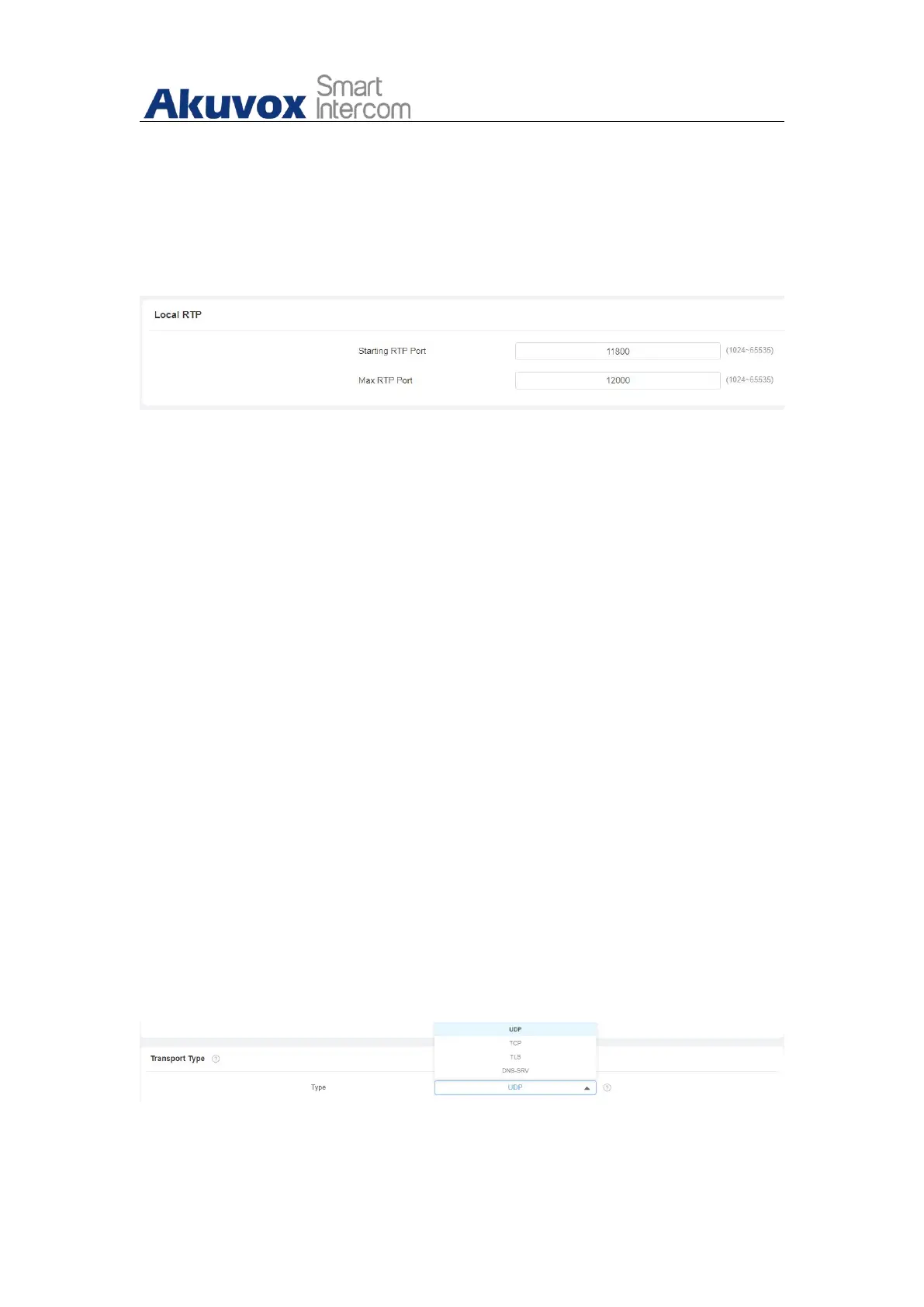 with a range of RTP port (Real-time Transport Protocol) for establishing an