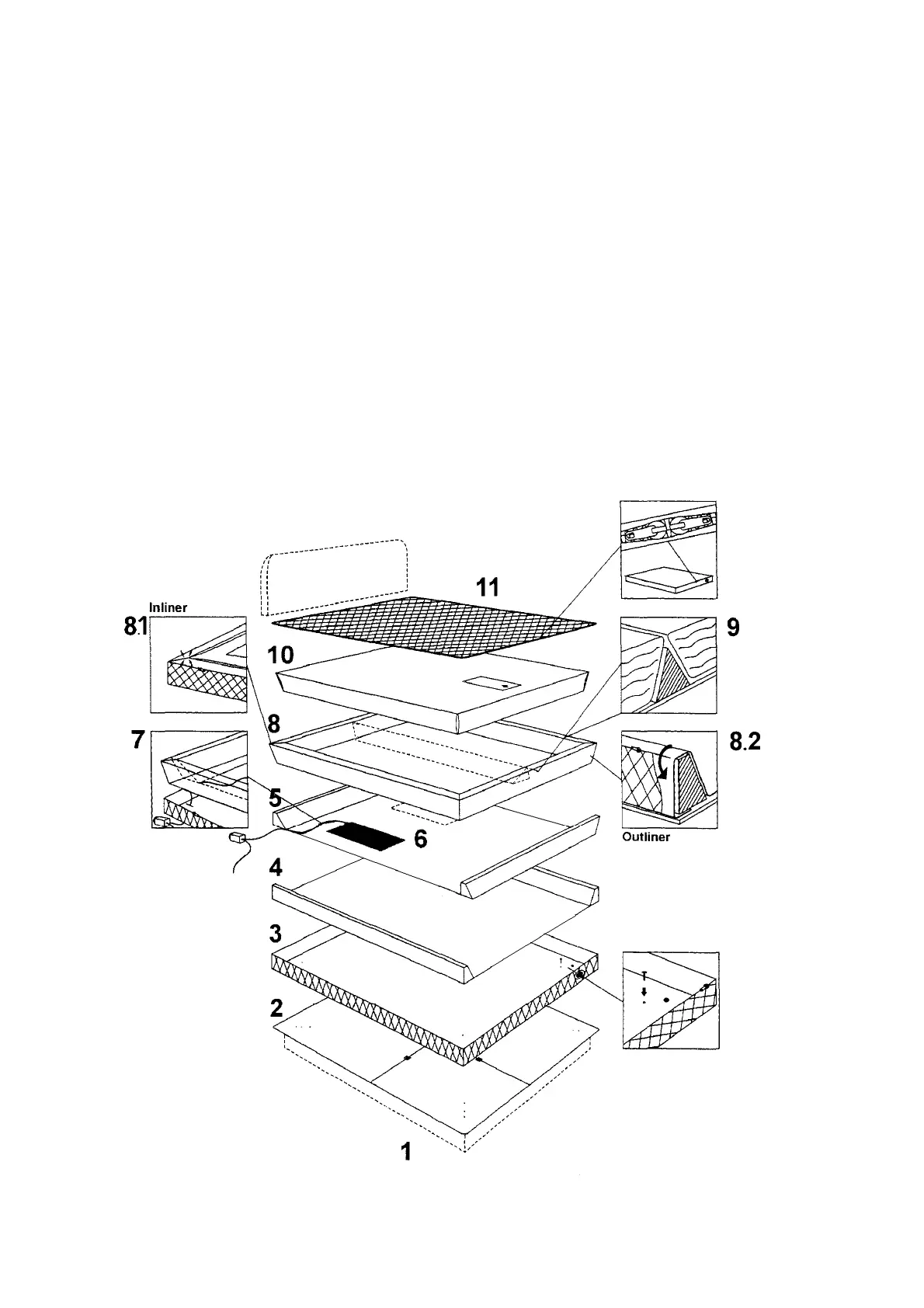 • Place the water mattress in the safety liner (10). See the instructions for water