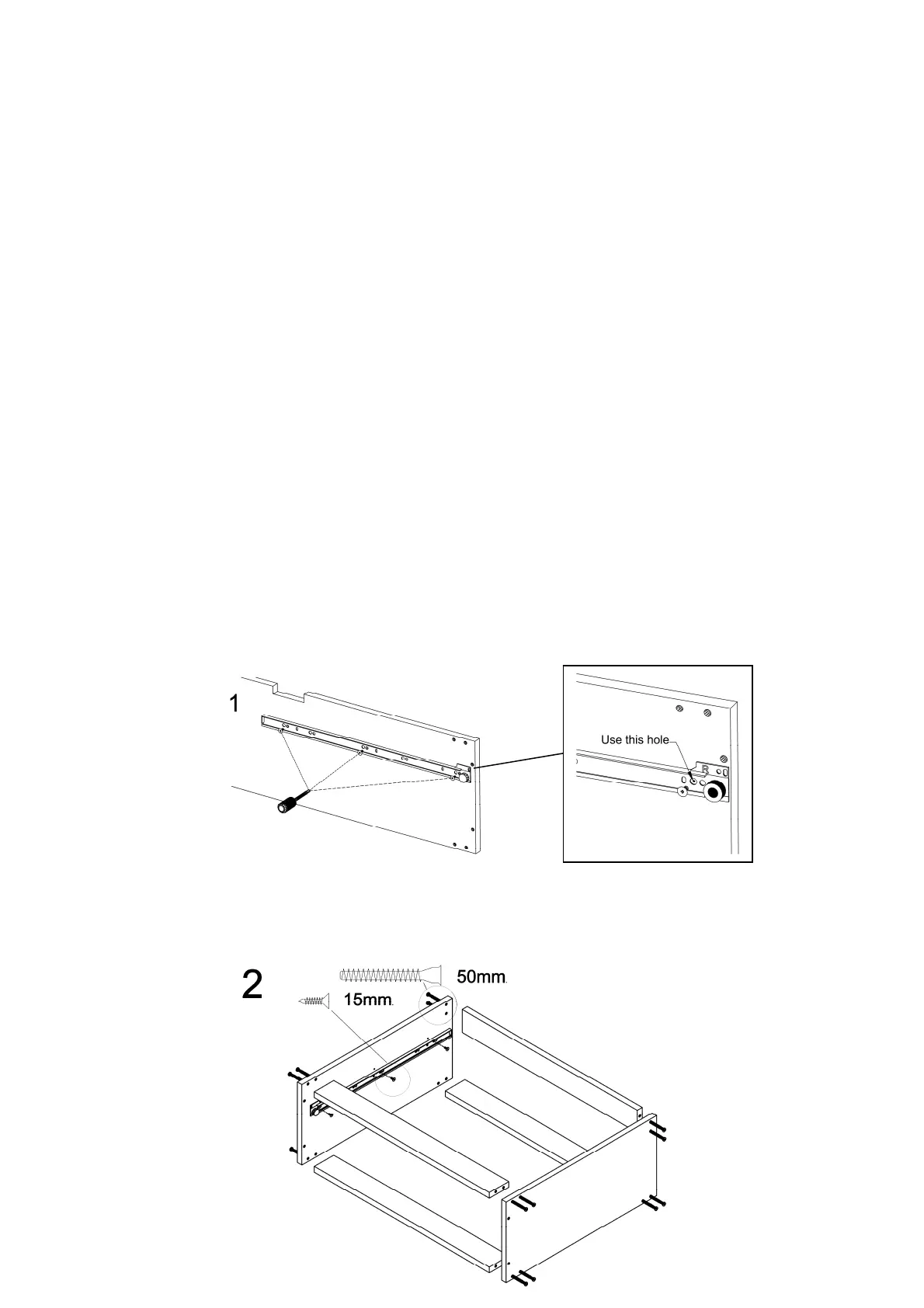 • Assemble the drawers by putting down the drawer bottom inside the drawer sides,