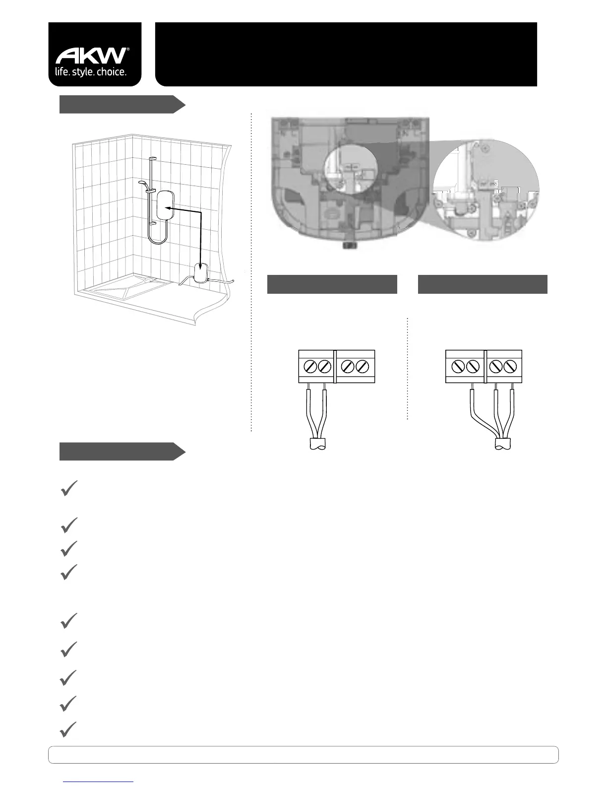 The shower must be connected to its own independent electrical circuit connected to RCD