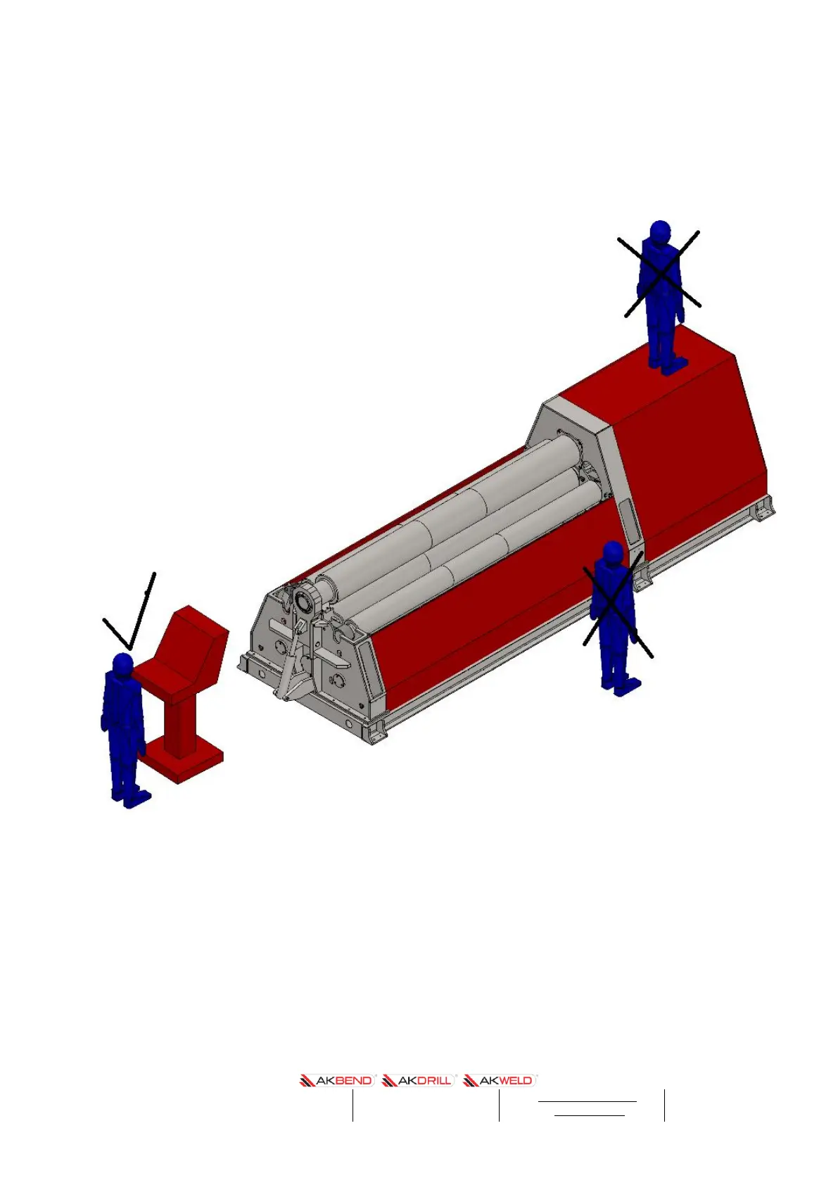Persons under the age of 16 are not allowed to operate 4 roll hydraulic cylinder. Operator
