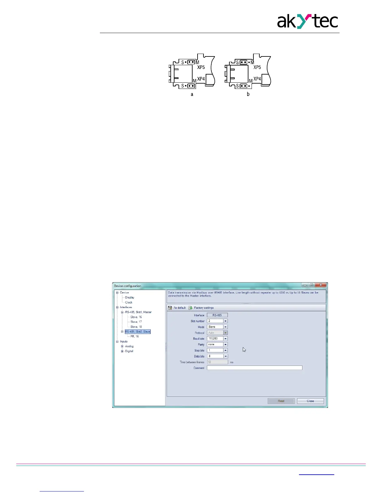 Fig. 4.2 PR-IC485 jumper positions: Master (a), Slave (b)