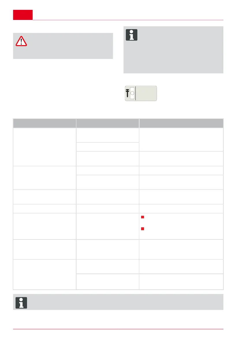 V případě poruch, které nejsou v této tabulce uvedeny nebo které nemůžete sami odstranit, se