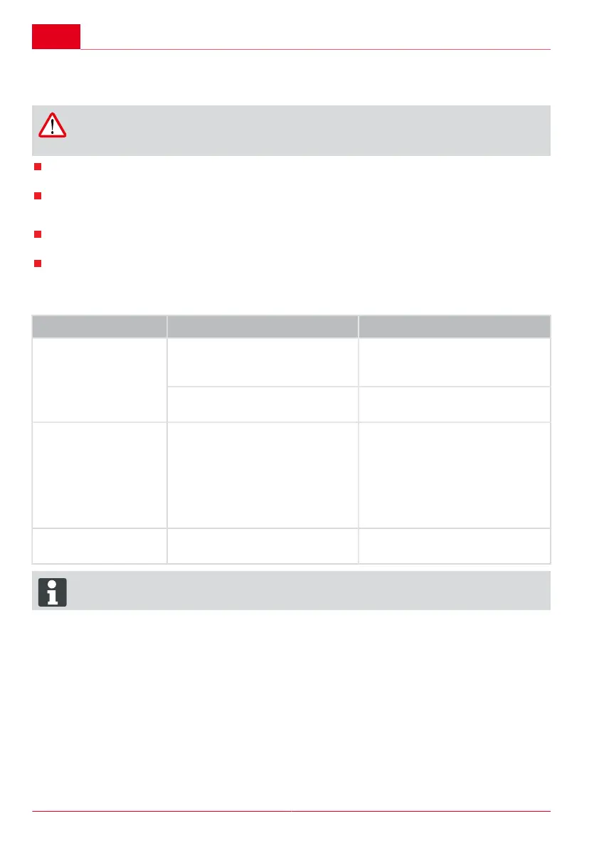 In the case of faults that are not listed in this table, or faults that you cannot rectify without
