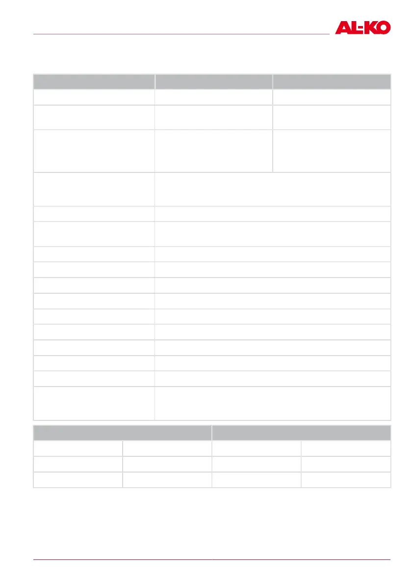Technical data Tandem variant Tandem S variant