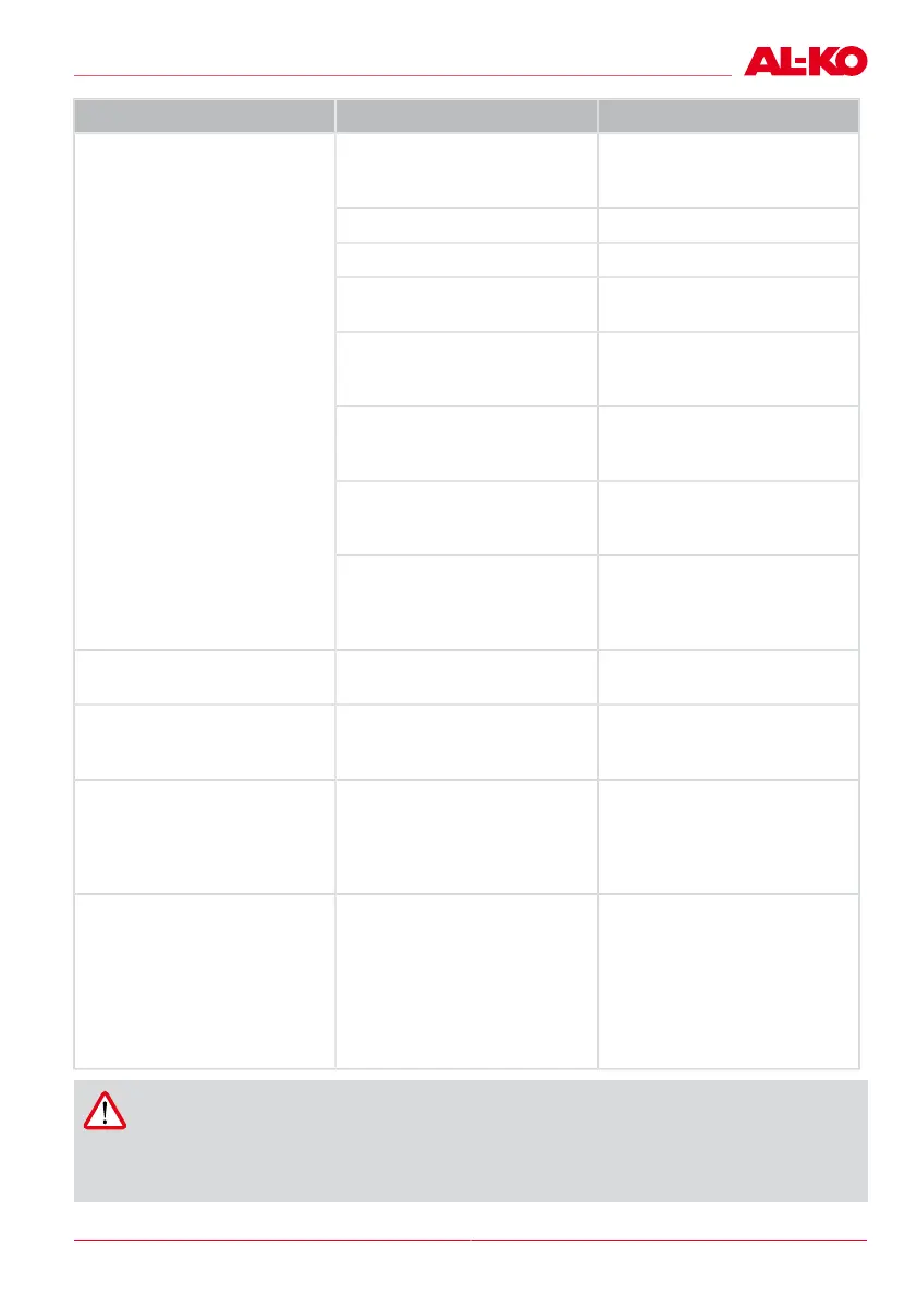 Always contact AL-KO service in case of malfunctions not listed here, or if you are in doubt.