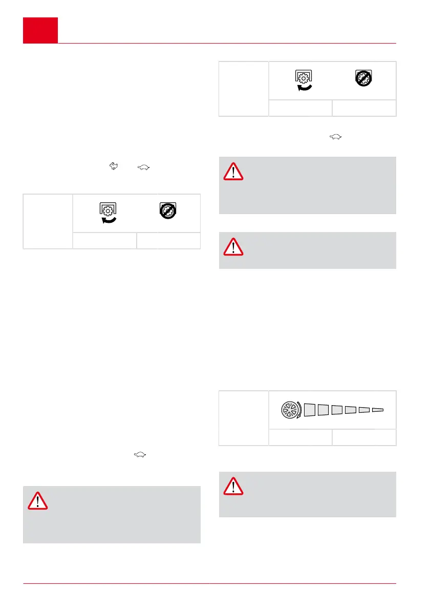 1. För högre hastighet, dra spaken (23) åt (23/2).