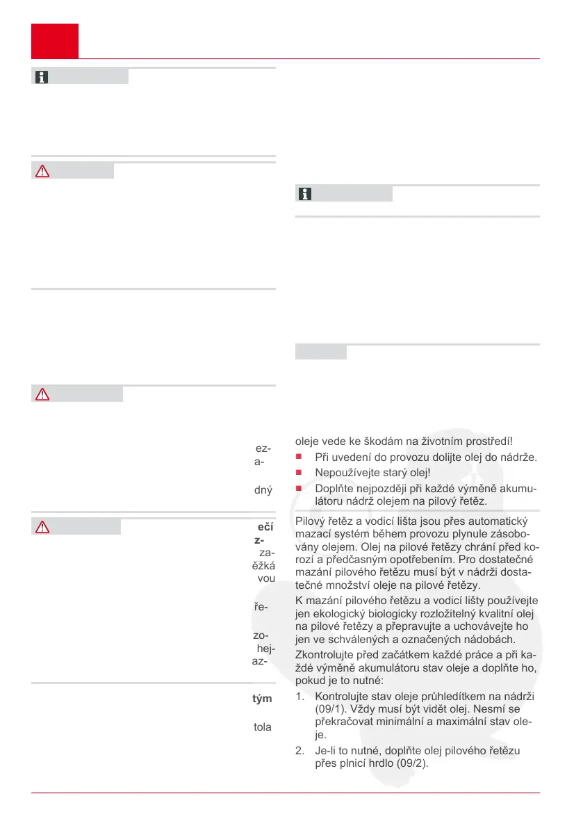 (09/1). Vždy musí být vidět olej. Nesmí se