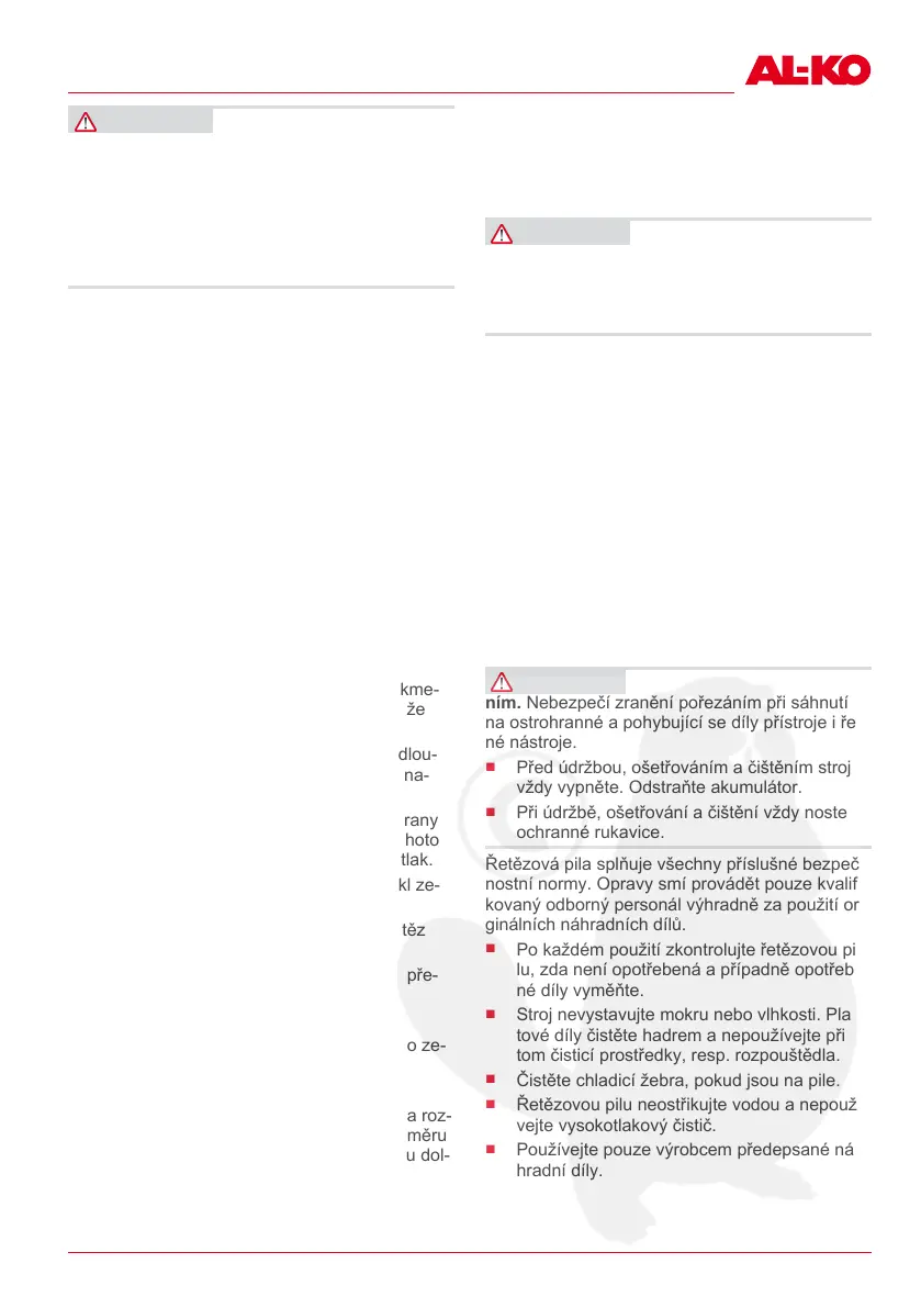 K řezu nasazovat pouze běžící pilu. Řetězo-