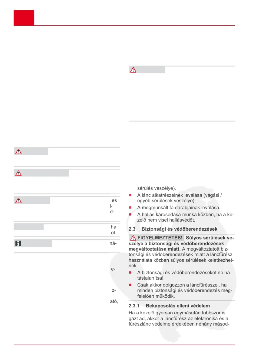 tonsági és védőberendezések miatt a láncfűrész