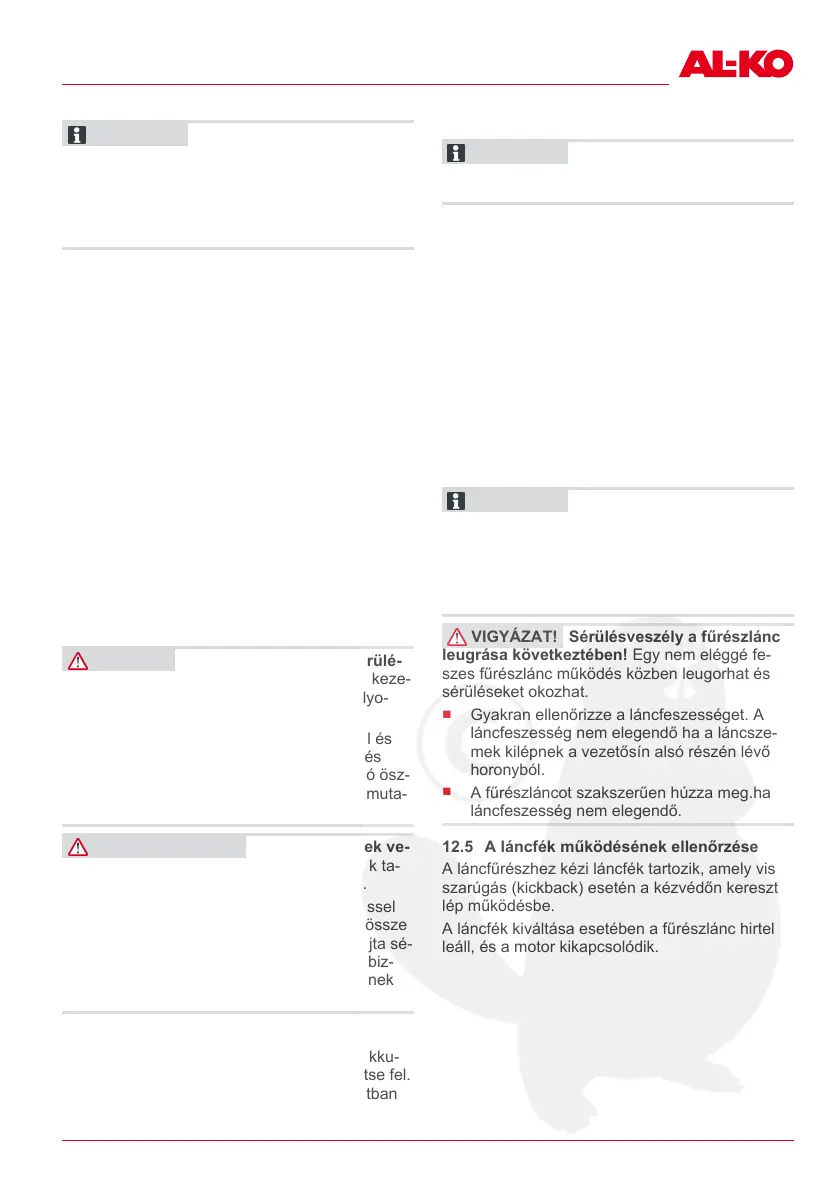VIGYÁZAT! Sérülésveszély a fűrészlánc